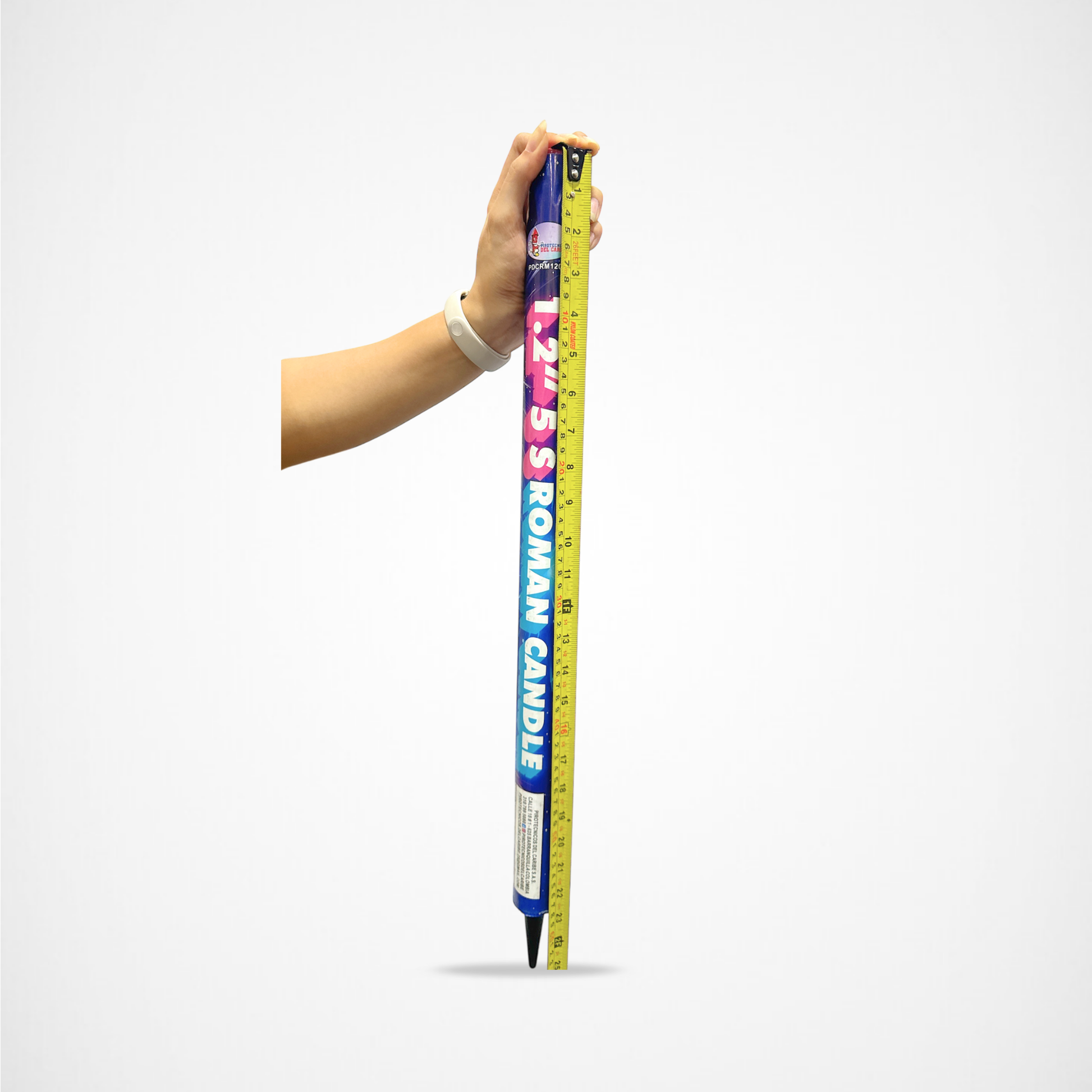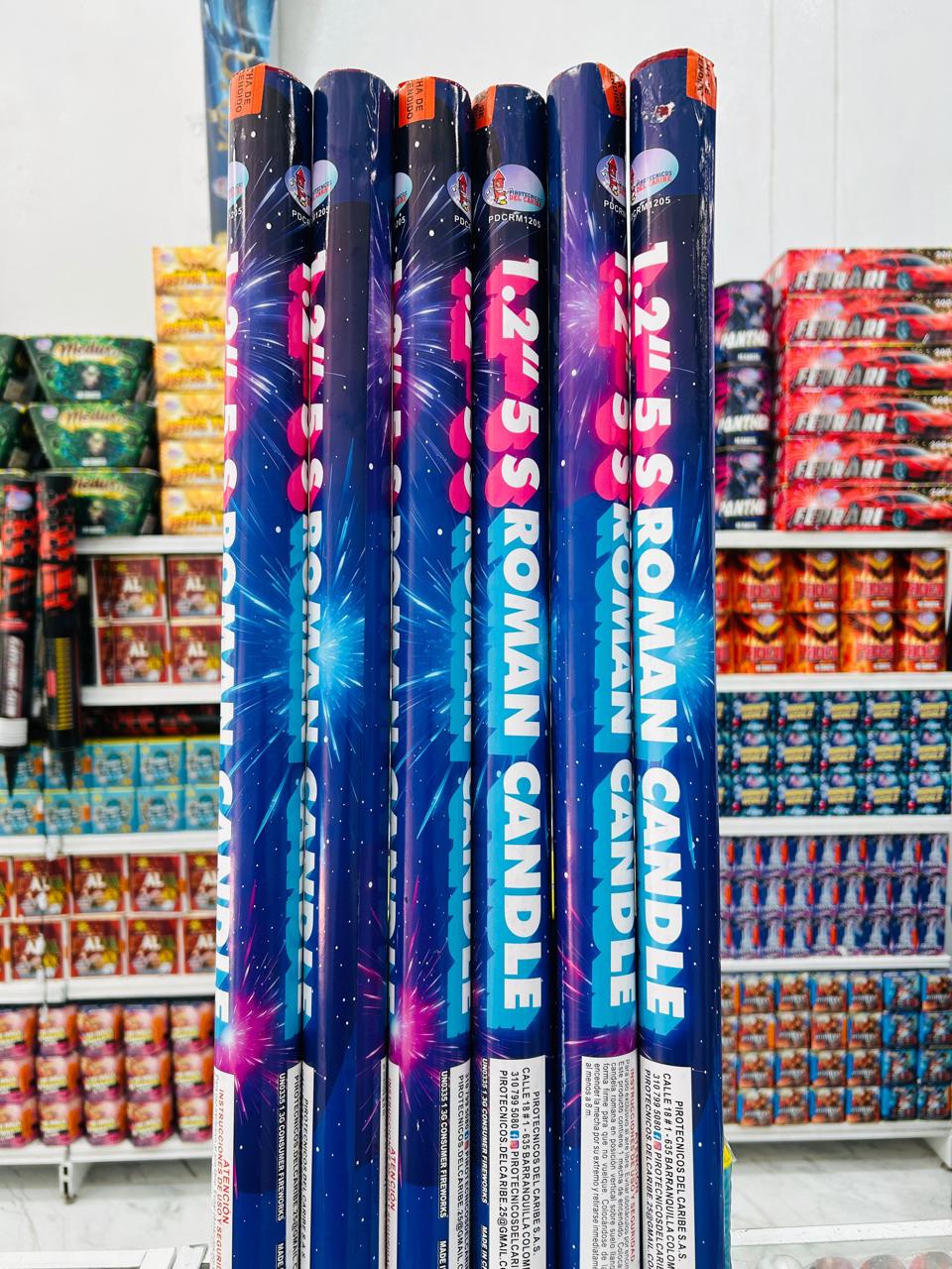 La Candela Romana 1.2” – 5 Shots es una versión más grande, más potente y de mayor proyección que las candelas tradicionales. Con un tubo de 1.2 pulgadas, esta candela dispara 5 tiros consecutivos de alto impacto, generando un show más fuerte, más luminoso y con una altura superior a los modelos de 0.8”.