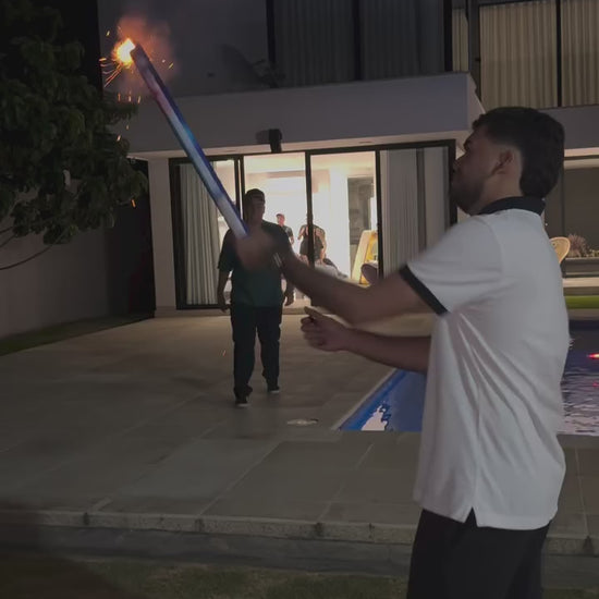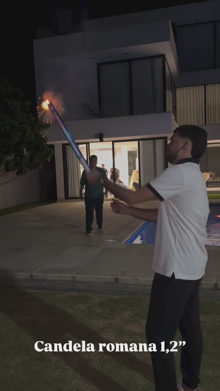 Es un producto que se sostiene con la mano, gracias a su tubo robusto y estable. Cada tiro sale con una carga más grande, colores más intensos y un efecto mucho más profesional. Es ideal para clientes que buscan una candela portátil, pero con potencia de evento.