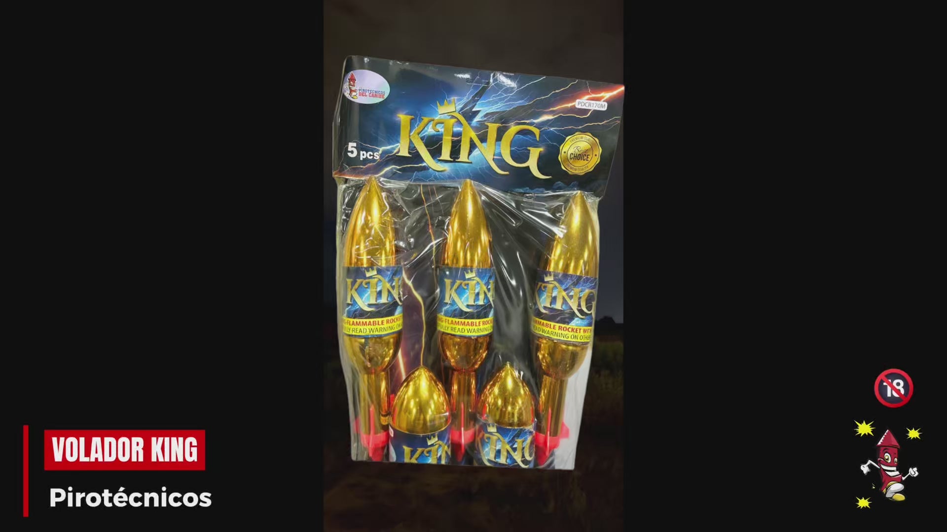 El Volador King es uno de los productos más potentes dentro de la línea de voladores profesionales. Con un diseño tipo mortero de 3 pulgadas, este volador asciende a gran altura y detona en un efecto amplio, brillante y de alto impacto visual. Es ideal para clientes que buscan un show robusto en un solo disparo.
